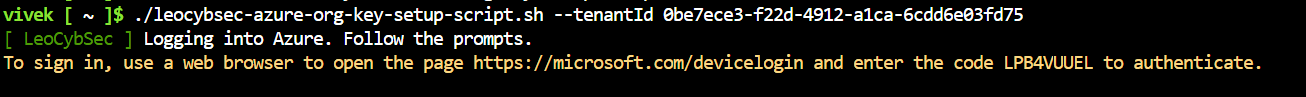./leocybsec-azure-org-key-setup-script.sh --tenantId Your Tenant ID