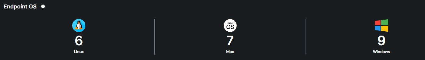 The total number of endpoints currently being tracked and protected, broken down by operating system type.